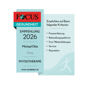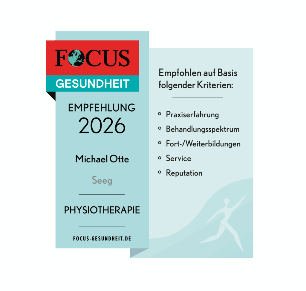 Auch in diesem Jahr freuen wir uns über die Aufnahme in die deutschlandweite Empfehlungsliste für Physiotherapie des Focus Magazins. Einsehbar ist die Liste unter focus-gesundheitsberuf.de. Wir freuen uns über diese Auszeichnung und bedanken uns bei unseren Patienten für Ihr Vertrauen!