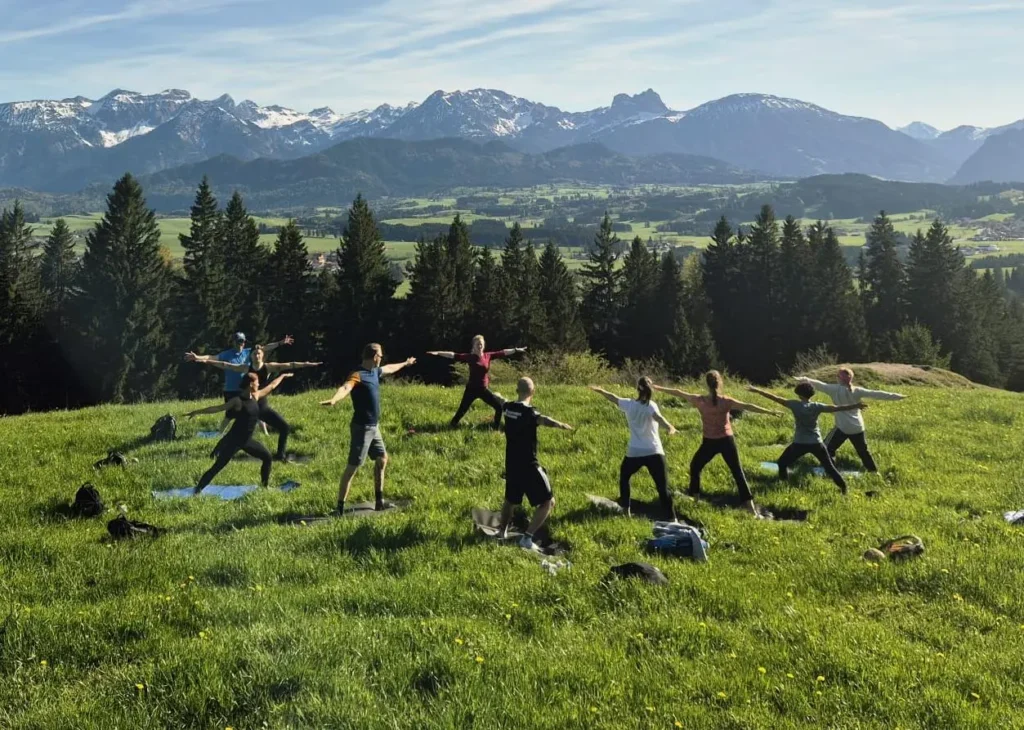 Ende April hat sich die Handwerk-Truppe zum Feierabend eine Yogastunde der besonderen Art gegönnt, unter Anleitung von unserer Martina genossen wir zeitgleich Ausblick und entspannende Bewegung. Für das leibliche Wohl war danach in der Alpe Beichelstein gesorgt.